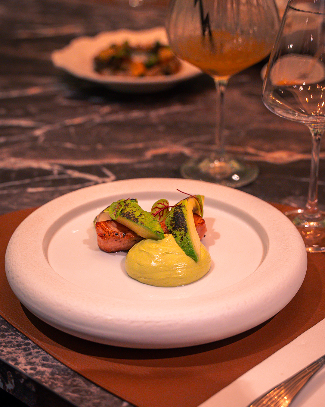 Ici, la cuisine met à l’honneur les produits frais, de saison, et s’inspire librement des envies de notre chef, Thomas Lemasson. La carte évolue au fil des semaines, selon les arrivages et l’inspiration, pour proposer une expérience culinaire authentique, généreuse et raffinée.